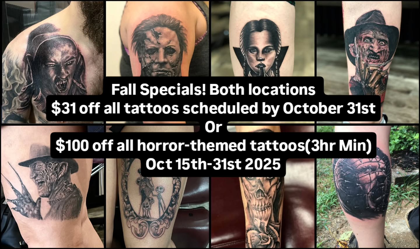 Whether you're looking for your first tattoo or adding to your collection, we've made it easier with two convenient locations to serve you. Book a consultation today to discuss your ideas with our talented artists.